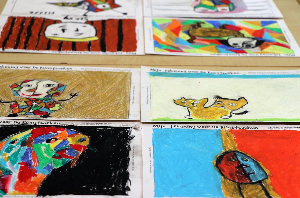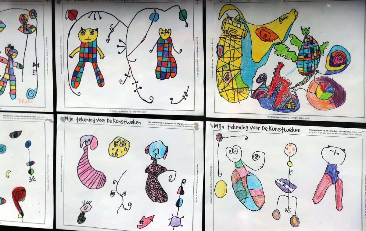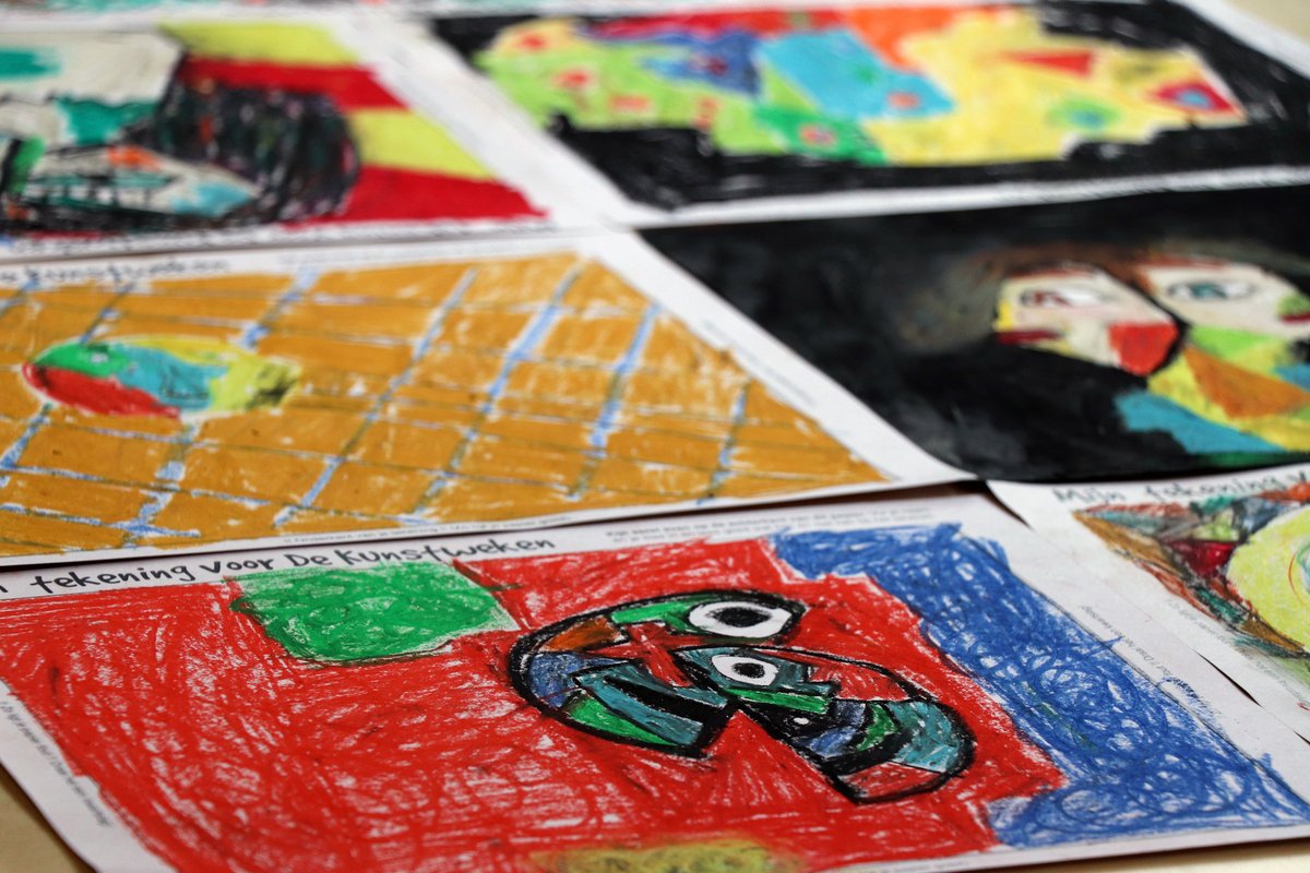 Het Mondriaan-museum was onderdeel van een schoolbreed project. In elke groep van De Vleugel stond een kunstenaar centraal. Zo zijn er werken gemaakt in de stijl van Keith Haring, Míro en Pablo Picasso. Hieronder een selectie van de kunstwerken.